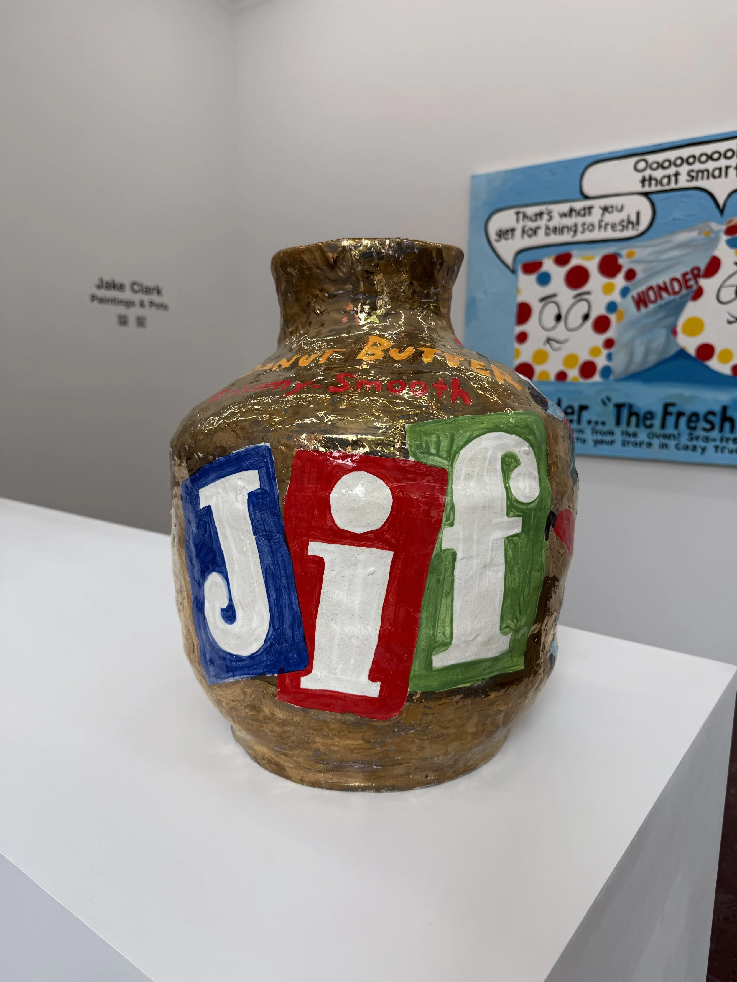 Across a dozen solo exhibitions over four continents, Jake Clark’s ceramic pots have paid homage to iconic social institutions, restaurants, watering holes and hotels around the globe. Now, Clark turns his attention to the Golden Age of American Advertising. For the first time incorporating large scale oil and acrylic paintings into his practice, Clark has created a dialog between the two mediums, each playing off the other.